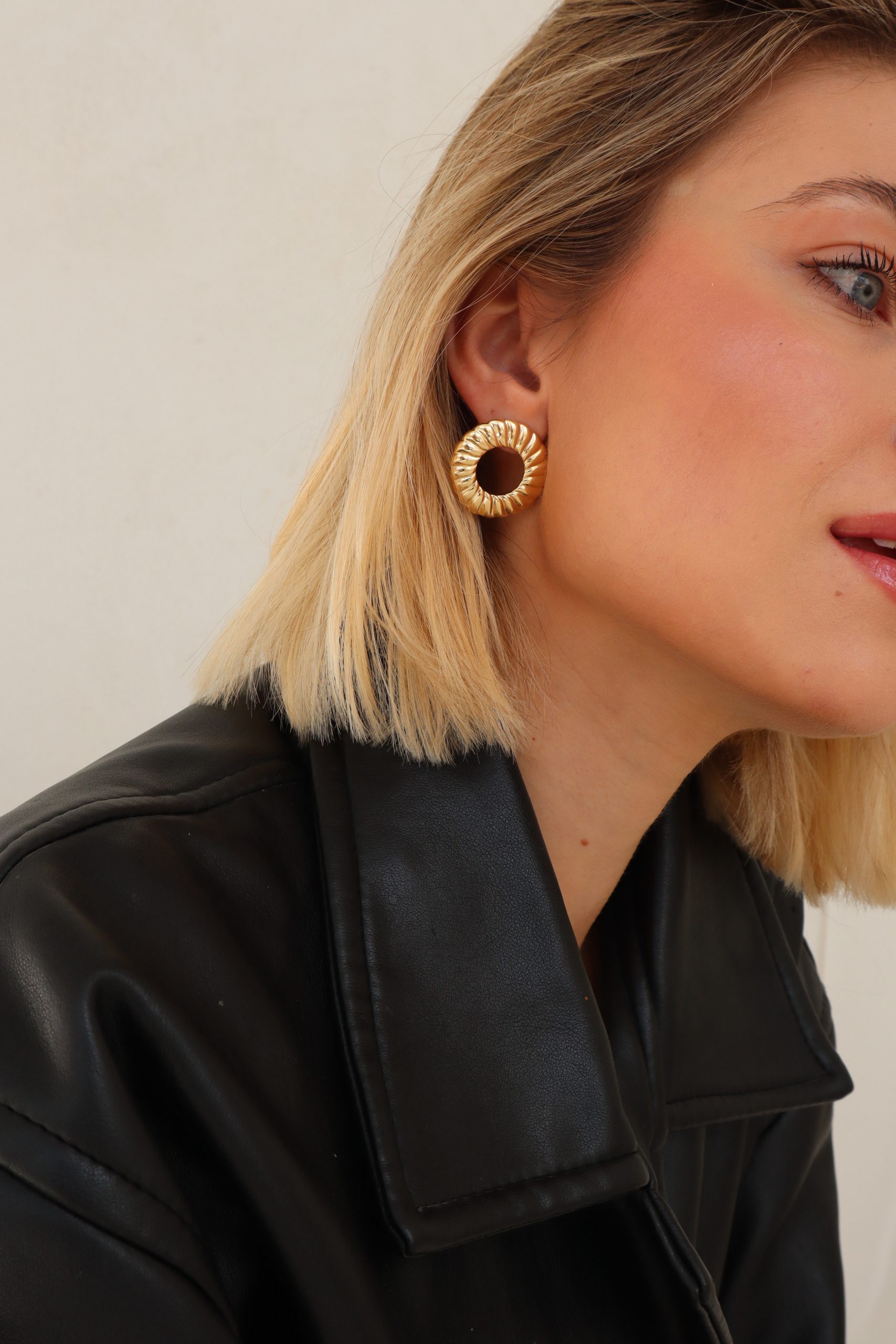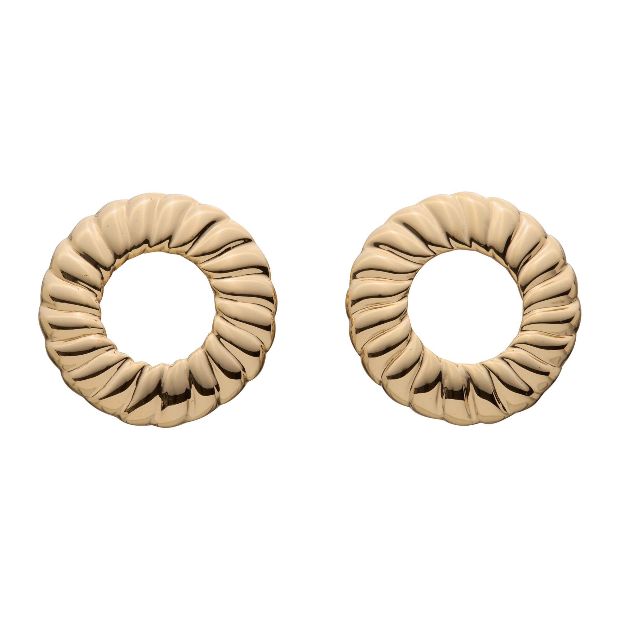 Kolczyki Round to duże, efektowne koła, które zdecydowanie przyciągają uwagę. Złożone z powtarzalnych elementów płynnie przechodzących jeden w drugi. Pomimo większego rozmiaru, kolczyki pozostają lekkie i komfortowe w noszeniu. Idealnie sprawdzą się na wieczorne wyjście. Wykonane ze srebra próby 925 i pokryte grubą warstwą 24-karatowego złota.